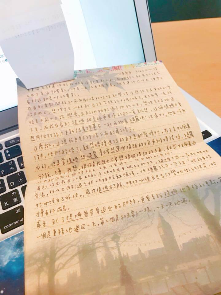 其實從老師還沒給我們看這部電影之前,在網路上就看到很多人在分享這部電影,但是一直沒有機會看。很幸運地可以在課堂上看到這部美好的電影。
