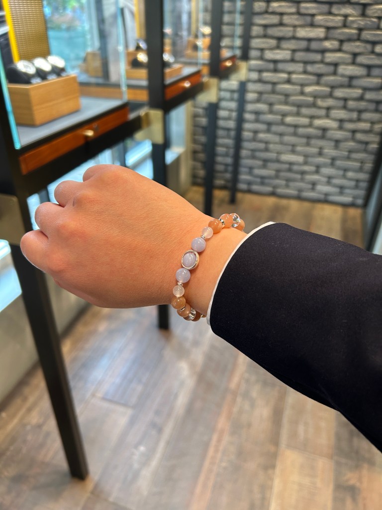 我那今年剛晉升英國人妻的好友Rosa,在4月從台灣回來英國前,從多年好友小魚那兒獲贈了一條親手製作的客製化水晶手鍊。