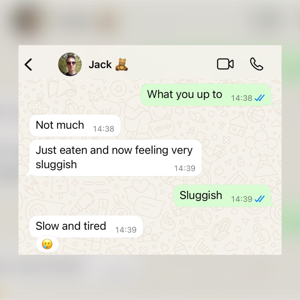I feel really sluggish after my lunch / dinner / eating all the food.