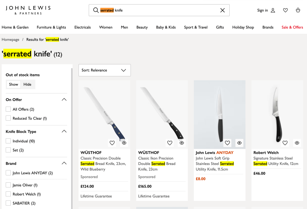 如果在家居用品網站,像是 Amazon 或英國 John Lewis 百貨公司官網上搜尋 serrated kitchen knife,就可以看到各式各樣切肉、切麵包的鋸齒狀刀款。