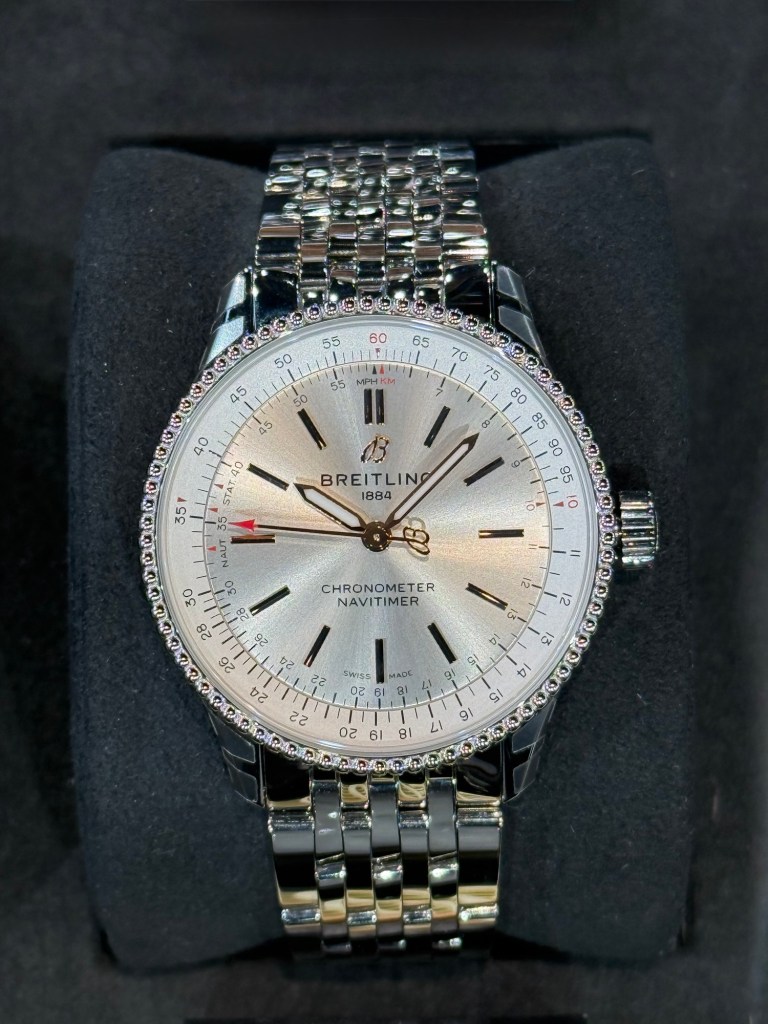 說到鑲珠邊的瑞士腕錶,最經典的代表當然就是我們 Breitling 百年靈的 Navitimer(航空計時腕錶系列)啦!💪