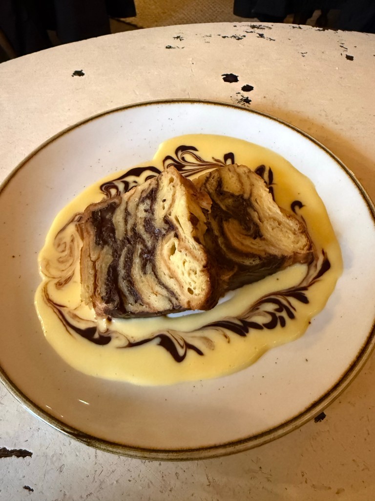 Chocolate Bread & Butter Pudding, Vanilla crème anglaise – £9.50